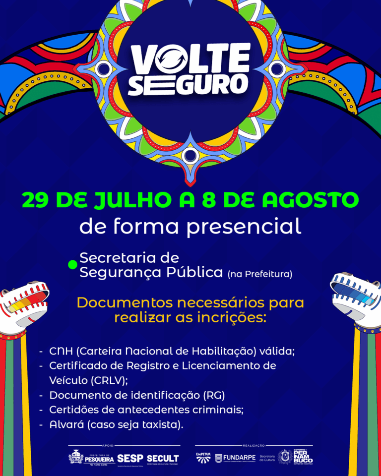 O Programa Volte Seguro está de volta para garantir um retorno seguro e organizado para quem vai curtir o Festival Pernambuco Meu País!