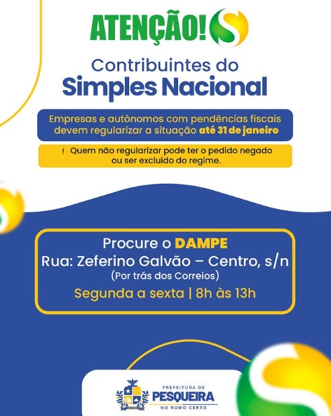 Empreendedores de Pesqueira que são contribuintes do Simples Nacional precisam ficar atentos ao prazo para regularização de pendências fiscais. O limite para resolver a situação é até o dia 31 de janeiro.