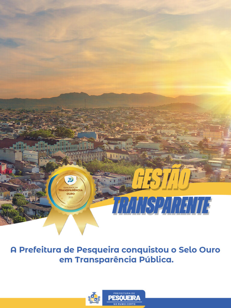 Pesqueira foi reconhecida com o Selo Ouro do Programa Nacional de Transparência Pública, um avanço importante que comprova o compromisso da gestão com a clareza na administração dos recursos públicos e o respeito à população.