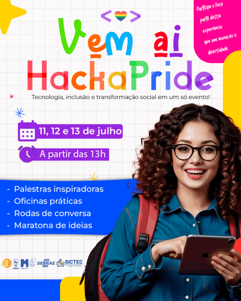 Serão três dias intensos de tecnologia, criatividade e conexões, com foco no fortalecimento da comunidade LGBTQIAPN+ e no desenvolvimento de soluções com propósito.